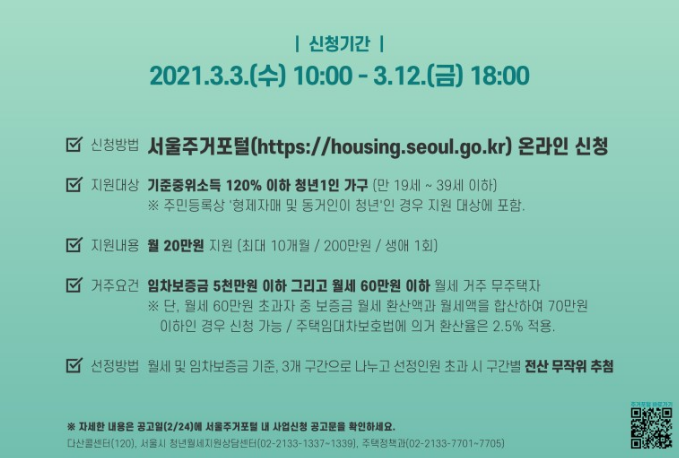 ▶ 2021년 서울시 청년월세지원 신청 자격은?